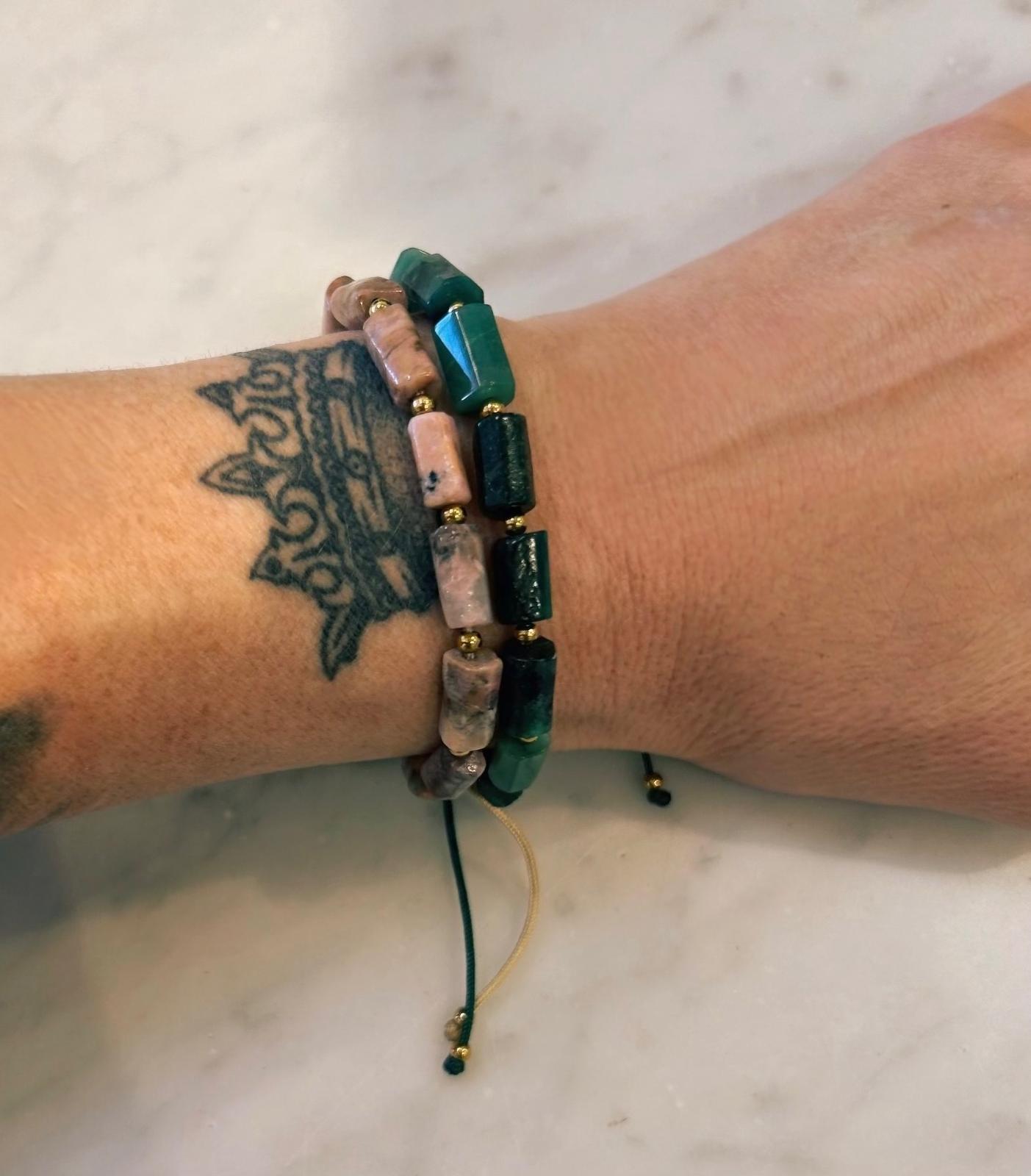 • Natural stone beads (green & pink options)